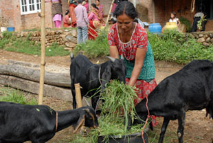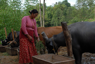 Mrs. Bhagabati Basnet is engaged in cow and buffalo raising business. At present she has 8 cows and buffalos. She sells milk to the dairy industry every morning. She also produces bio gas for cooking in her own house.